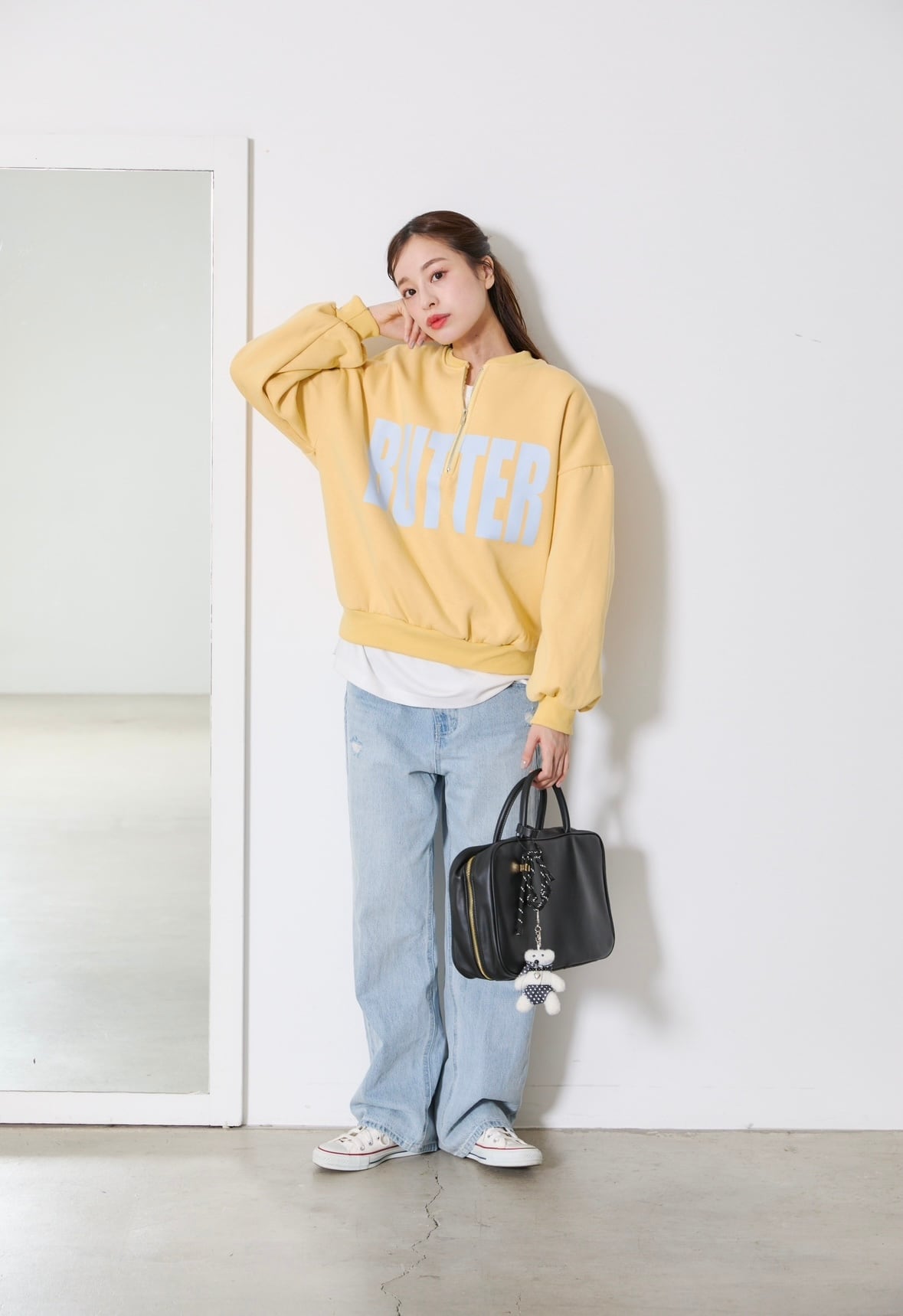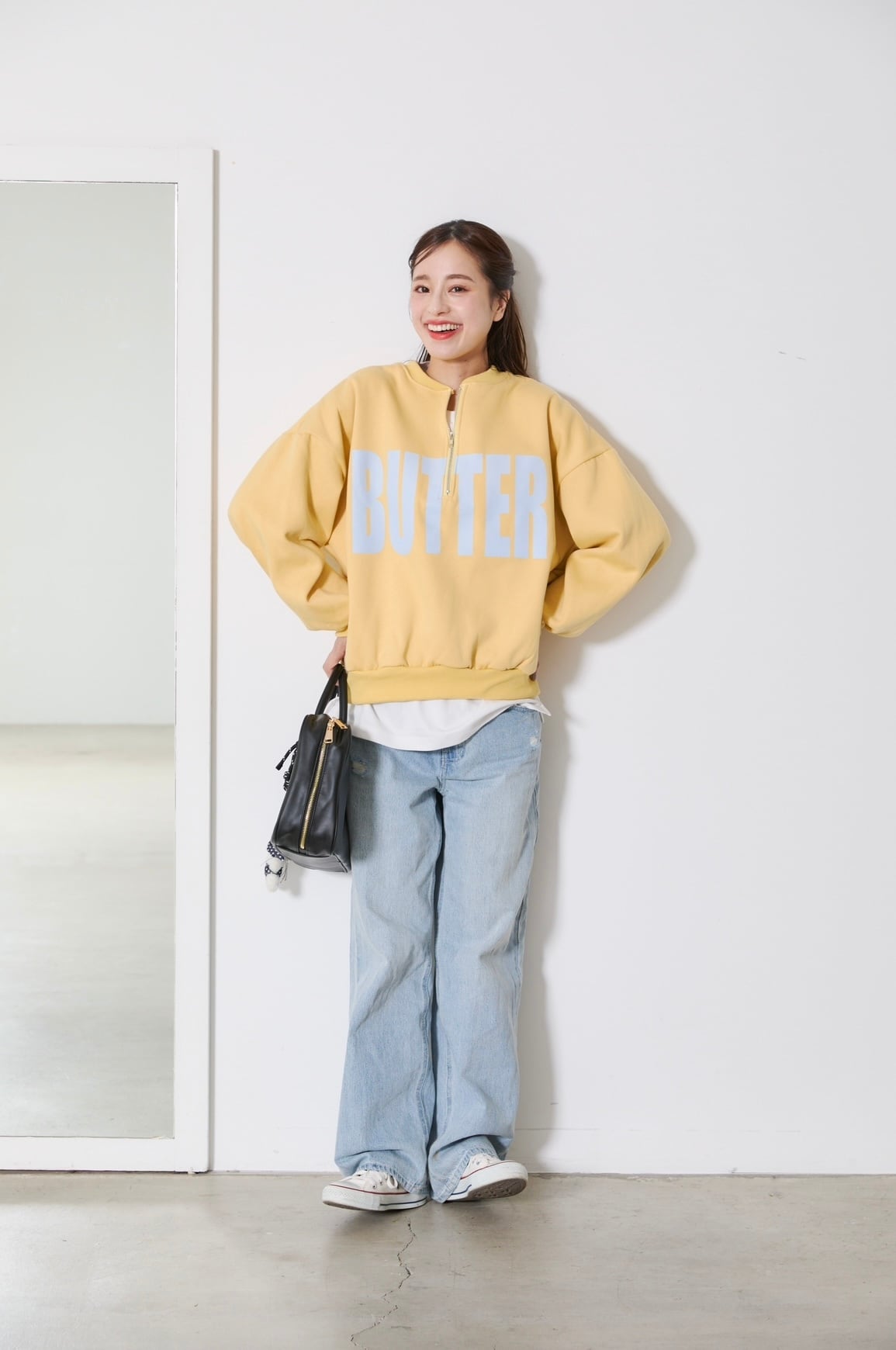 少し長めのチュニック風の着丈と、深く開いたジップで抜け感をプラスしたデザイン♪