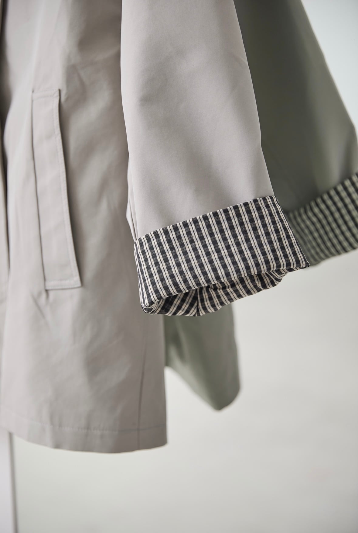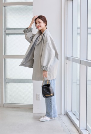 フロントボタン仕様で羽織りやすく、袖口を折り返せばチェック柄となりアクセントになっています♩