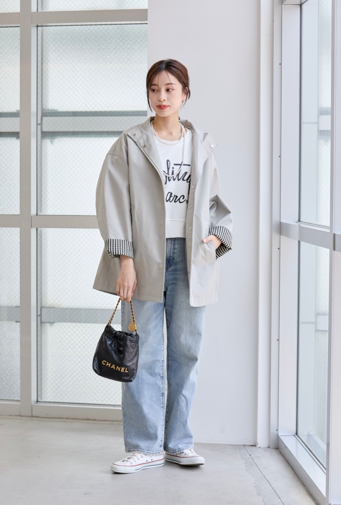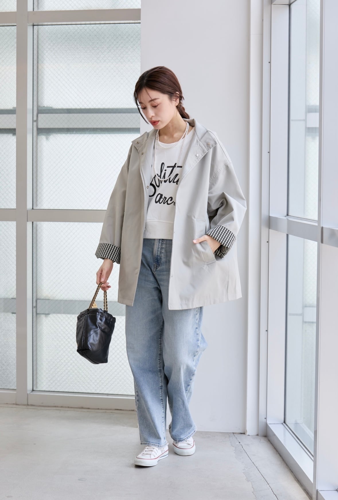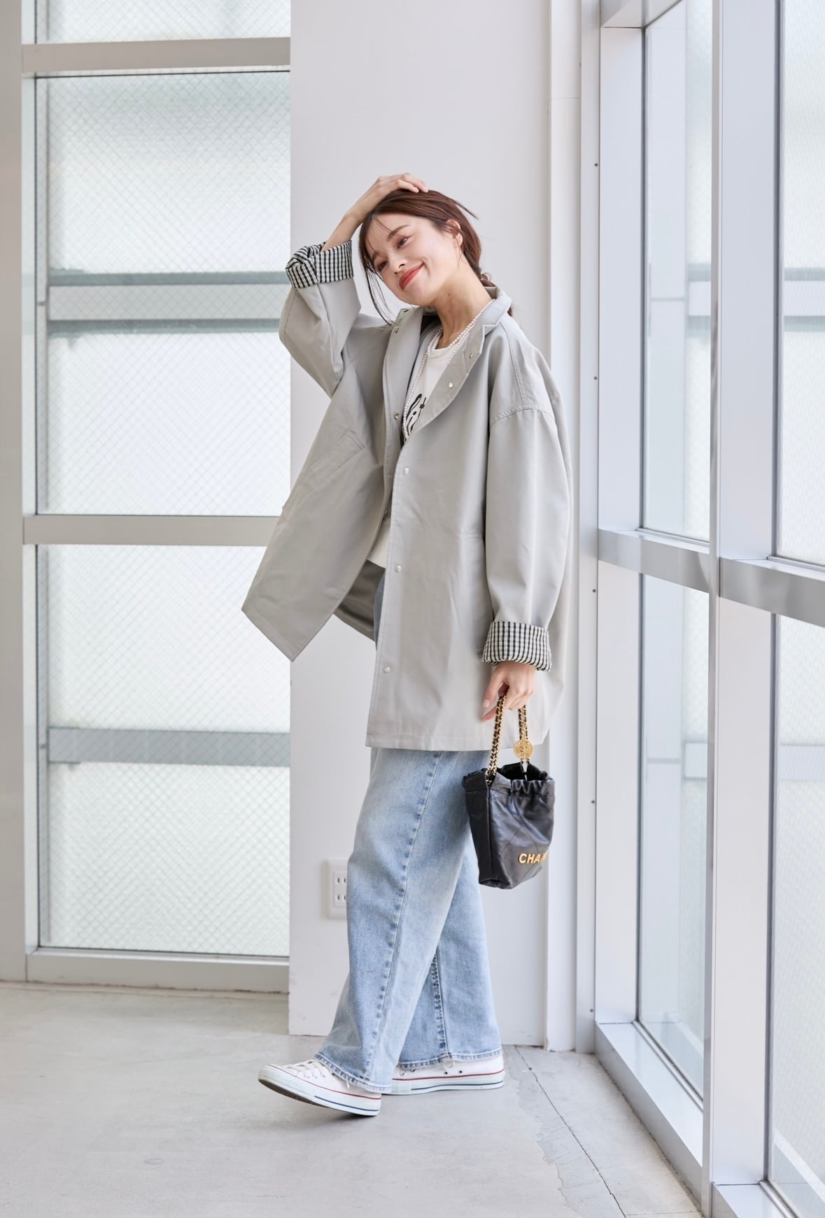 カラーは落ち着いたグレー系となっており幅広いコーデに馴染みやすく、ゆるっとしたシルエットでトレンド感のあるカジュアルコーデに最適です◎