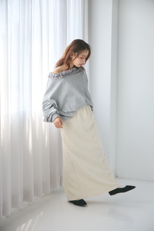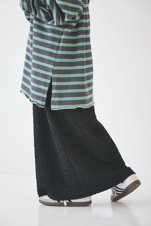 全体に細かいシャーリング加工を施した、表情豊かなロングスカート。