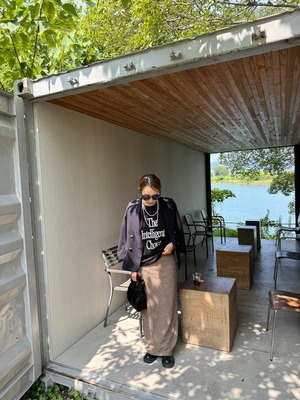 シンプルなTシャツやスウェットと合わせてカジュアルに、ブラウスやジャケットと合わせればきれいめスタイルにもハマる万能スカートです♩