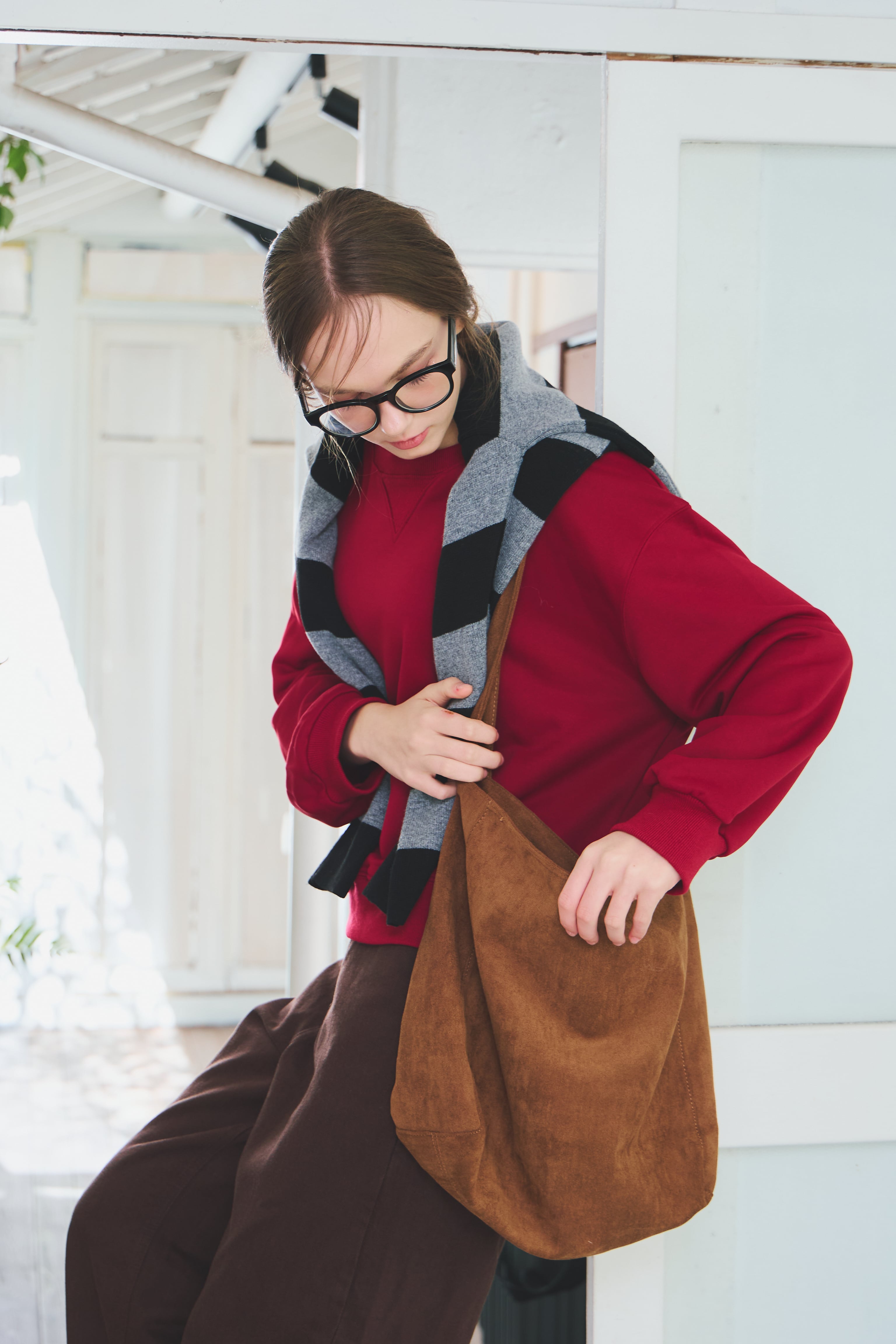 無地だからこそボトムスや小物次第で雰囲気を変えられ、ワードローブに一枚あると重宝するアイテムです。