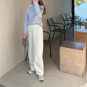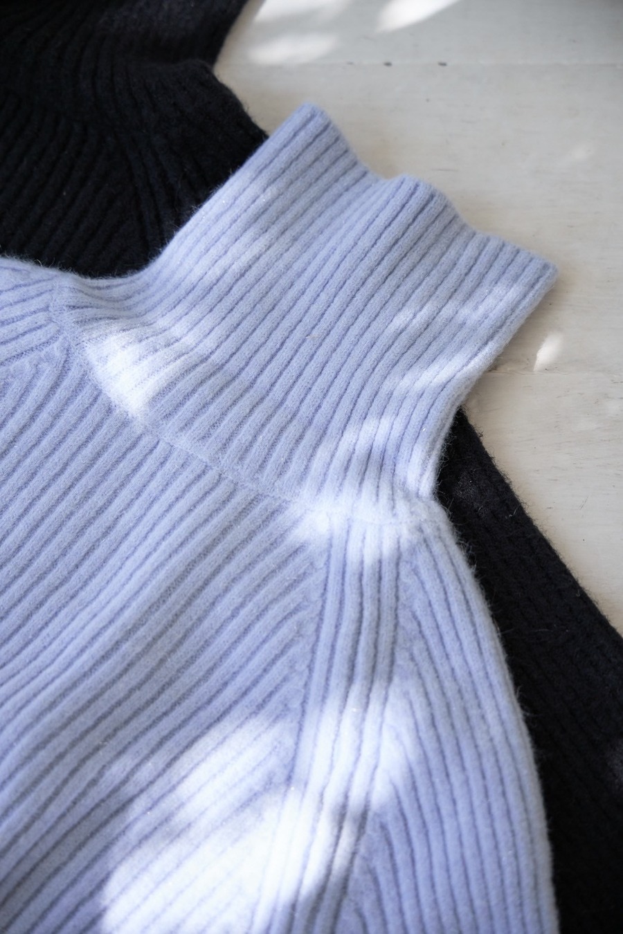 縦ラインを強調する細めのリブ編みで