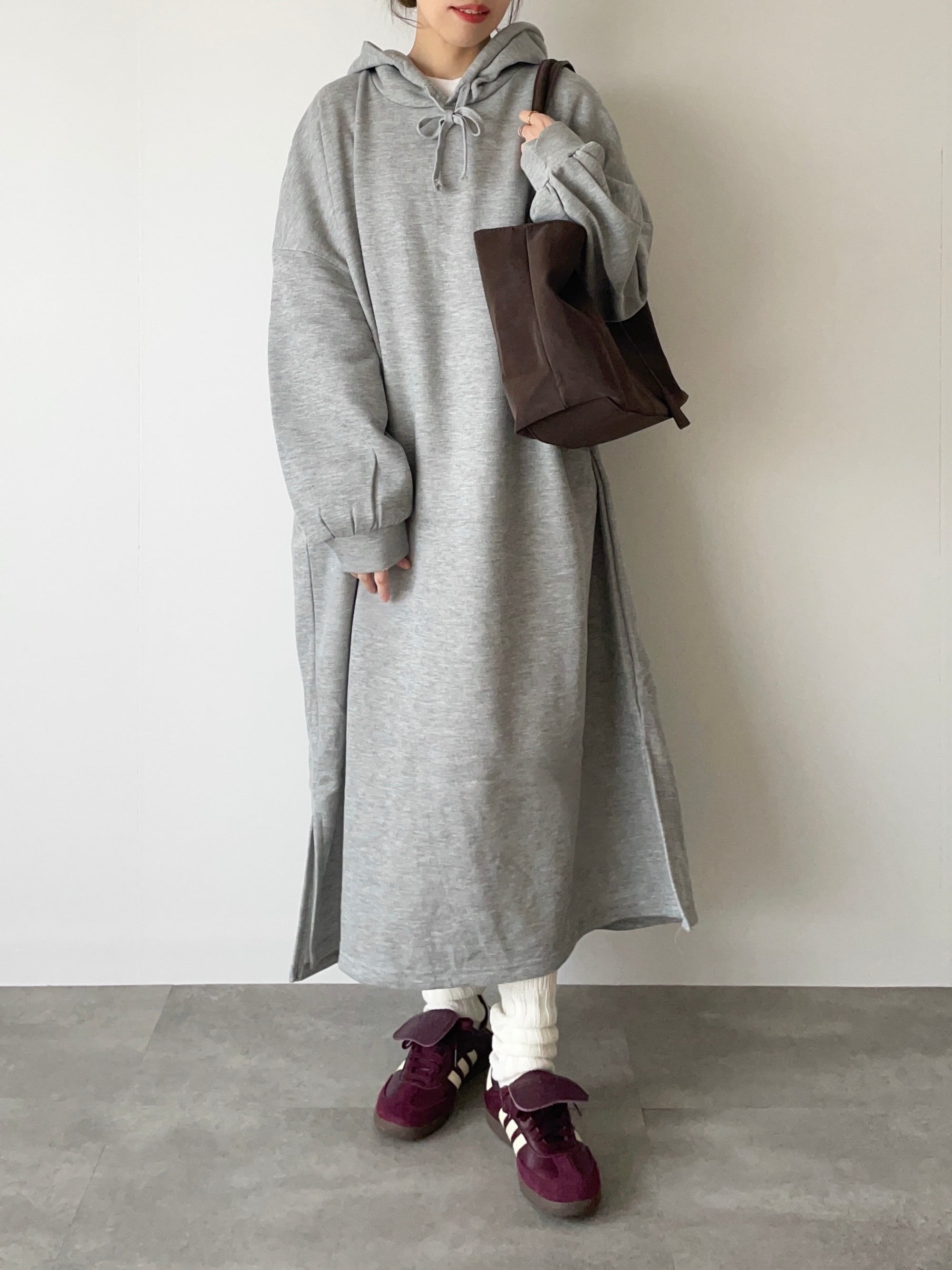 裏起毛フーディロングワンピース。